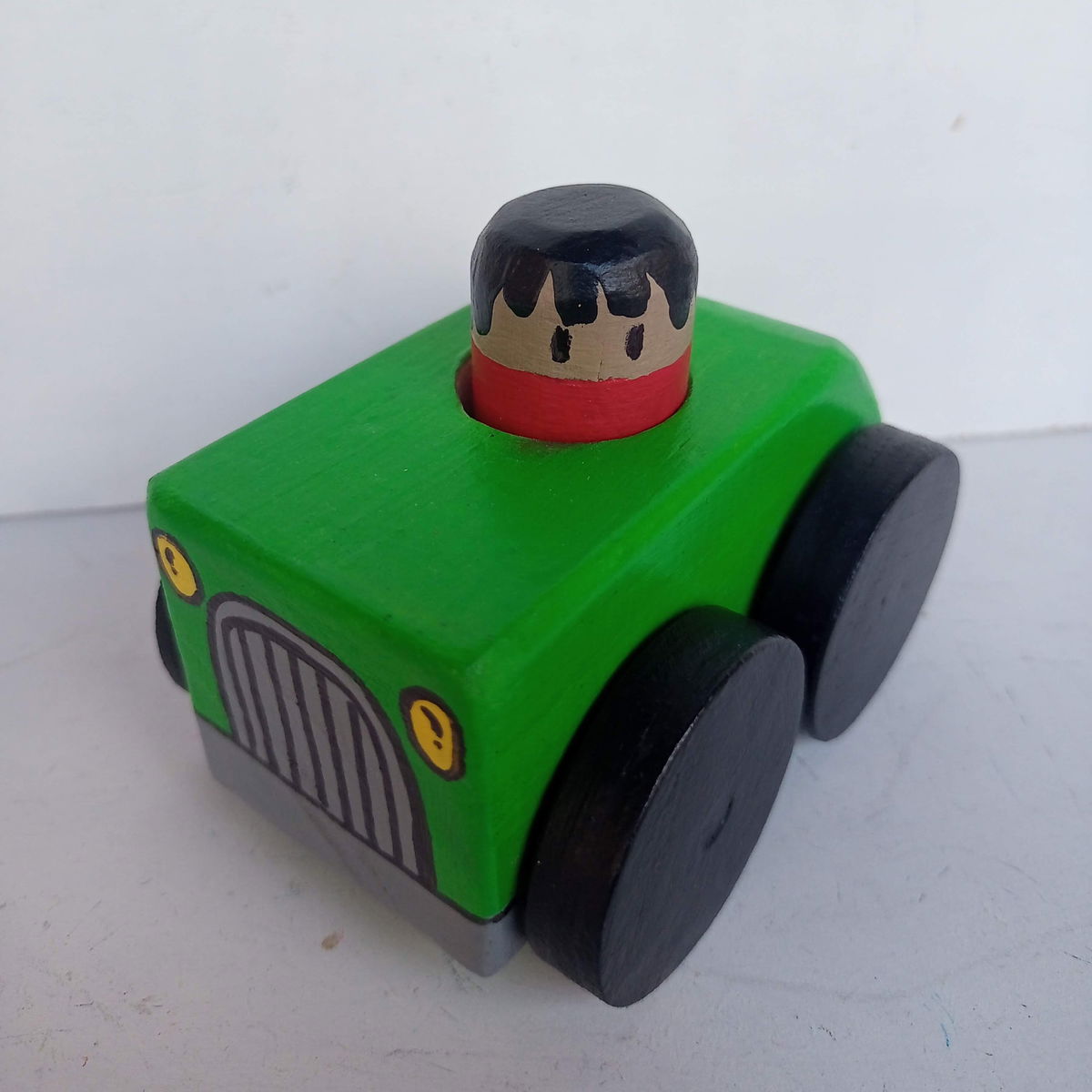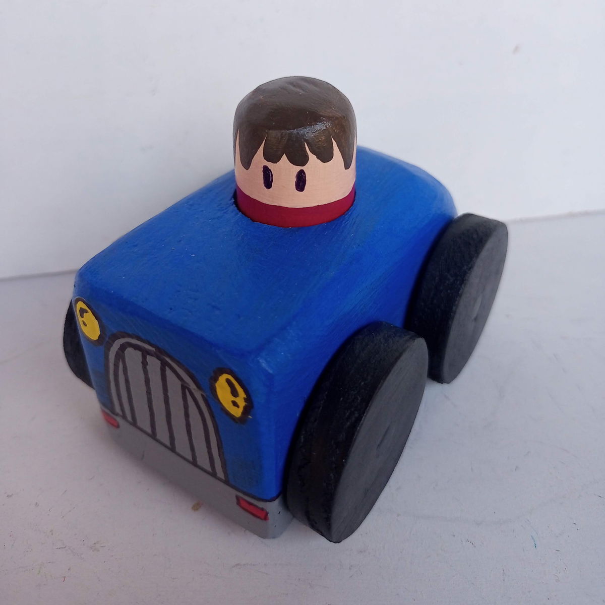 Este auto de madera con un muñeco encastrable es perfecto para acompañar el juego libre de los peques. Diseñado para estimular la motricidad, la creatividad y la exploración, es un juguete artesanal.