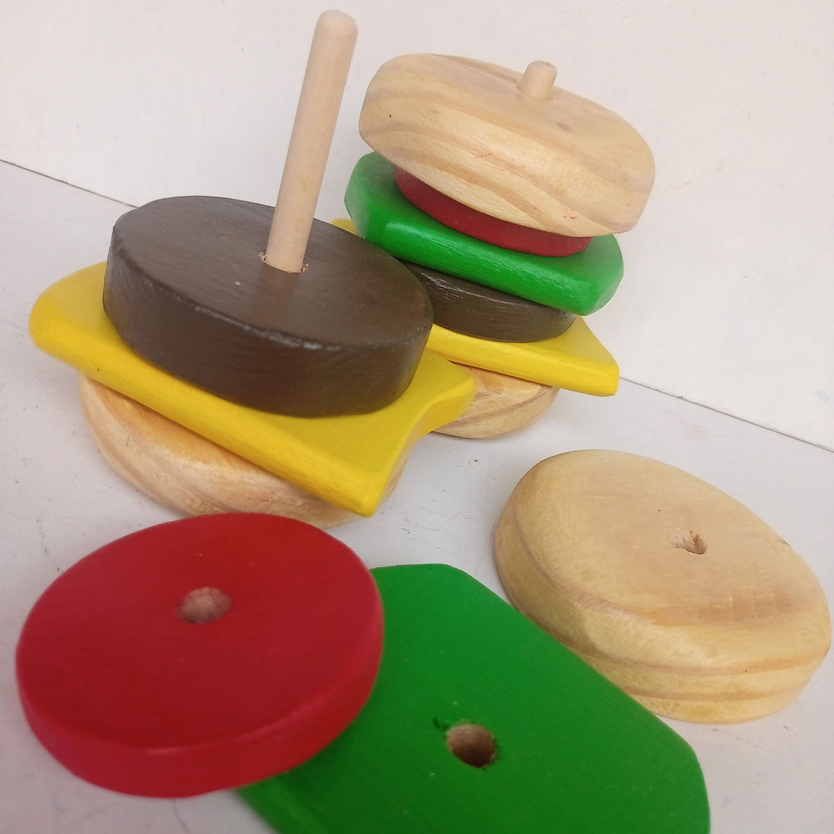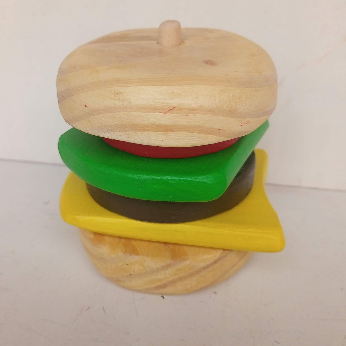 Con este divertido juguete de madera encastrable, los peques pueden armar y desarmar su propia burger una y otra vez. 🧀🥬